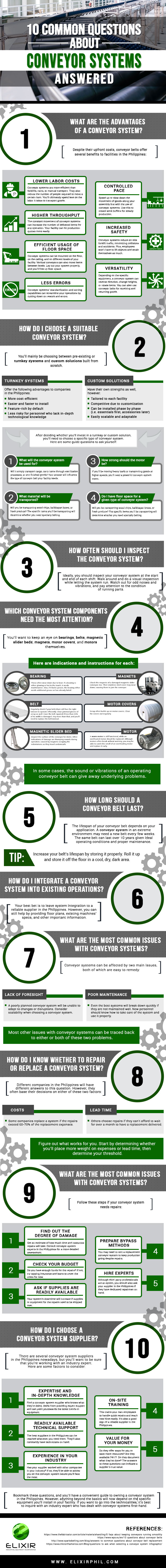 To cater to your queries while giving you a handy overview of conveyor systems, here are 10 frequently asked questions about conveyor systems answered. Keep an eye out for maintenance tips from the industry experts while reading this infographic!